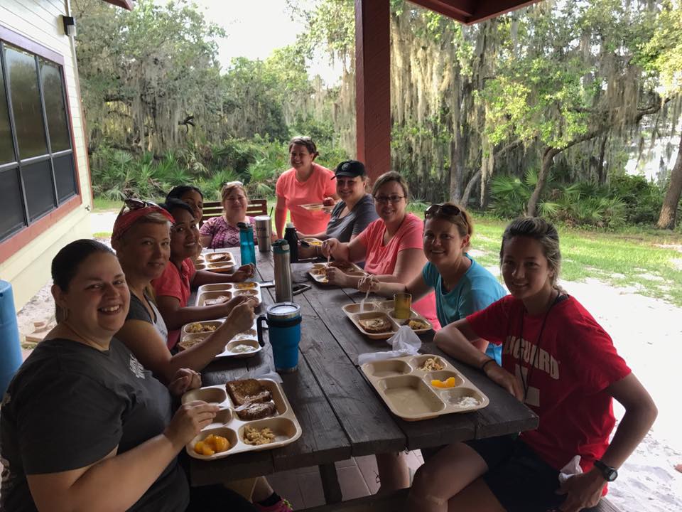 I have to hand it to Cindy. She slept without A/C in Florida in July for four straight nights and didn't try to escape and hitchhike home at any point. She participated in the activities and had a good experience. I was really proud of her. Except for when we were taking this photo because the only reason she smiled so great is because the camp cook bribed her with cake.